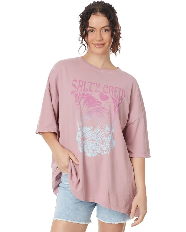 - Surf’s up, style’s on! The Salty Crew® Big Wave Cover Up Tee: Your go-to for beachside badassery. This oversized tee is designed for ultimate comfort, featuring a loose fit, classic crew neck, and breathable short sleeves for laid-back, coastal vibes. The bold screen print on the chest adds a touch of adventure, perfect for days spent by the water or catching waves. Easy to pull on and go, this tee offers effortless style for any casual outing.