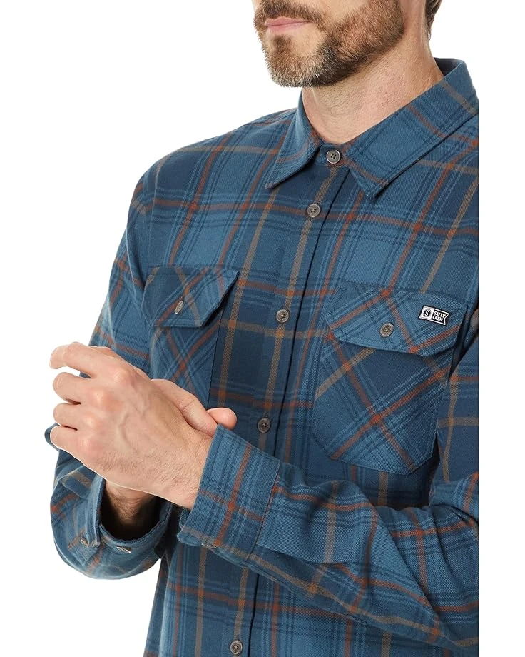 - Stay stylish and cozy all day! The Salty Crew® Daybreak Long Sleeve Flannel combines timeless plaid with modern flair, featuring a classic collared neck and long sleeves with buttoned closure. The button front closure and yarn-dyed plaid pattern provide a perfect blend of durability and style. Dual chest pockets with buttoned flaps add a practical touch, while branded swirl buttons elevate the look. Finished with a soft hand garment wash, this flannel promises ultimate comfort and a relaxed fit.