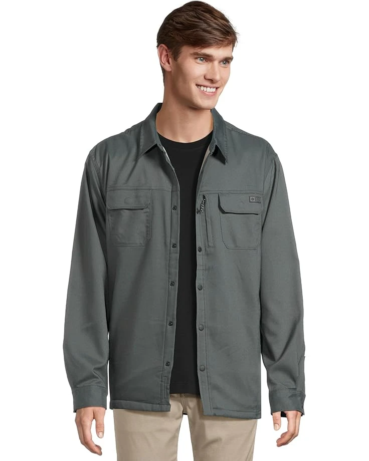 - Stay ahead of the season styling the Salty Crew® Fathom Long Sleeve Tech Shacket-where style meets function. Designed for the modern adventurer, this midweight poly twill shacket features a durable DWR coating to keep you protected from the elements. With a cozy polar fleece liner and brushed tricot front pockets, it offers warmth and comfort wherever you go. The yarn-dyed plaid with snap button details and a zippered welt pocket add sleek versatility, while the buttoned cuffs and two chest pockets provide added convenience.