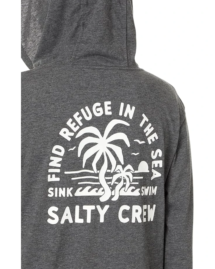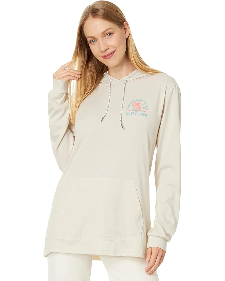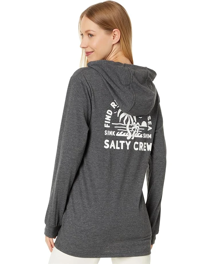 - A stylish addition to your wardrobe, the Salty Crew® Good Times Hooded Tech Tee keeps you cozy and comfortable all day. The UPF 40+ sun protection of the tee shields your skin from harmful sun rays while the polyester blend fabric makes it durable for everyday use. Featuring screen print graphics at the chest and back body, this graphic hoodie is styled with long sleeves, a straight hem, and a hooded neckline. The drawcord encased at the hood offers a snug fit. Comfortable and stylish, this hooded tee will become your all-season favorite.