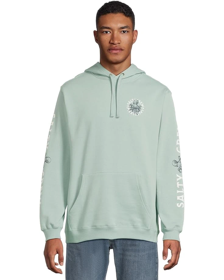 - Elevate your casual look choosing the Salty Crew® Lurking Fleece. Featuring a drawcord hood, long sleeves, and a front kangaroo pocket, this hoodie is both practical and stylish. The ribbed cuffs and hem ensure a comfortable fit, while the screen printed logo on the front and back adds a touch of personality.