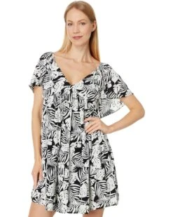 - Accentuate a chic and casual vibe by dressing up in the Salty Crew® Mainland Mini Dress. The pull-on style dress is adorned with a V-neckline, short flutter sleeves, side-zip closure, smocked back, allover printed details, and full hem with with a mid-thigh length silhouette.