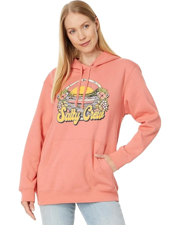 - Stay cozy and stylish on your next adventure by wearing the Salty Crew® On Vacation Pullover Hoodie. This comfy hoodie features a hooded neckline with drawstring, perfect for keeping the chill out. The long sleeves with ribbed cuffs add a touch of warmth, while the straight hemline keeps the look classic.