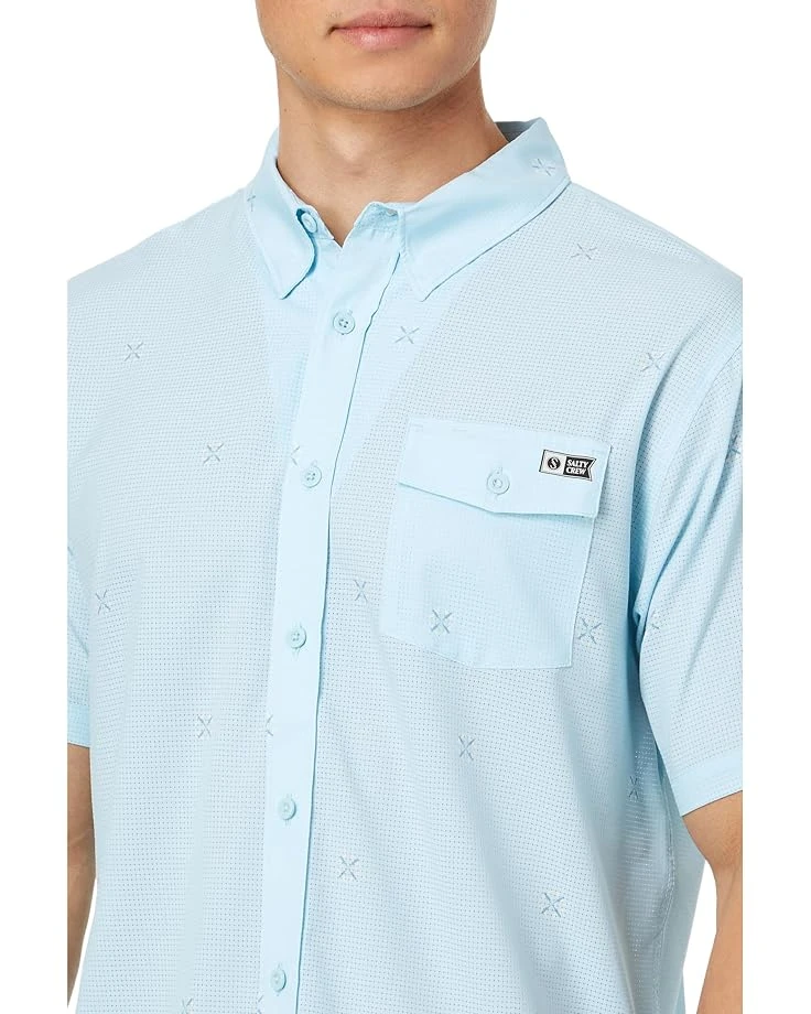 - Set the fashion pace in your extremely versatile look wearing Salty Crew® Sailfin Short Sleeve Perforated Woven Shirt. Made from lightweight perforated fabric, the regular fit shirt features a collared neckline, short sleeves, and button-flap patch pocket at the left chest.