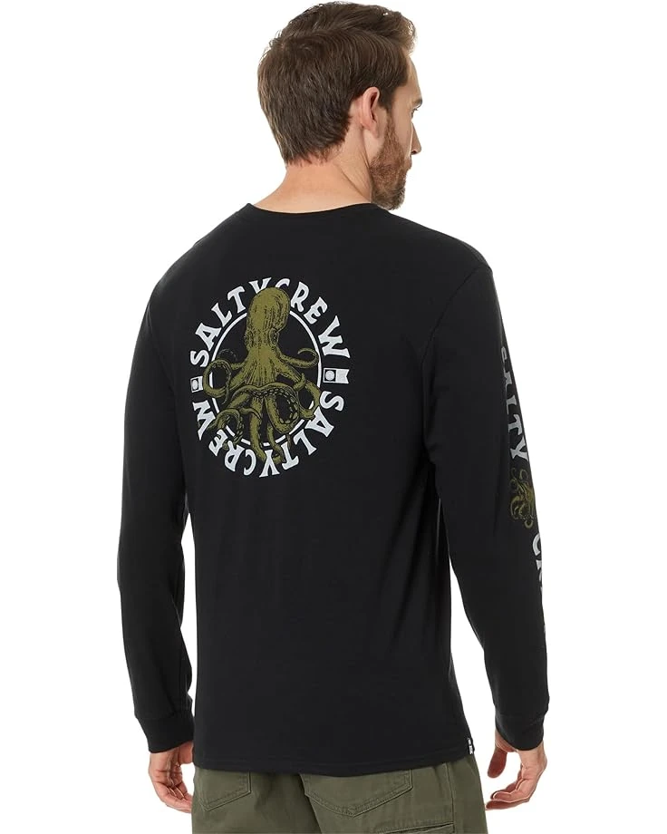- Showcase the charm of your fashionable presence wearing Salty Crew® Tentacles Premium Long Sleeve Tee. It is made from 30 singles combed ringspun with screenprinted detail at the front, back, and sleeves.